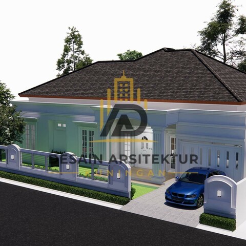 Desain rumah dengan sentuhan arsitektur klasik, pilar megah, dan detail ornamen yang halus. Dirancang untuk memberikan kesan mewah namun tetap nyaman untuk ditinggali.